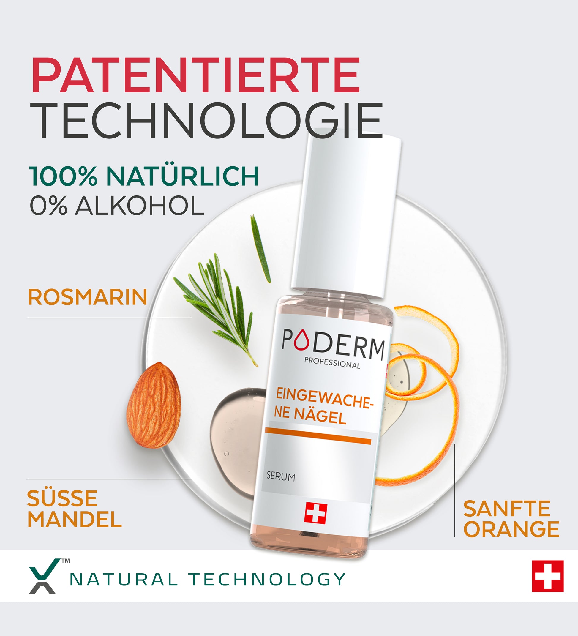 Die Inhaltsstoffe in den PODERM® Nagelseren werden streng ausgewählt und sind alle zu 100% natürlichen Ursprungs.