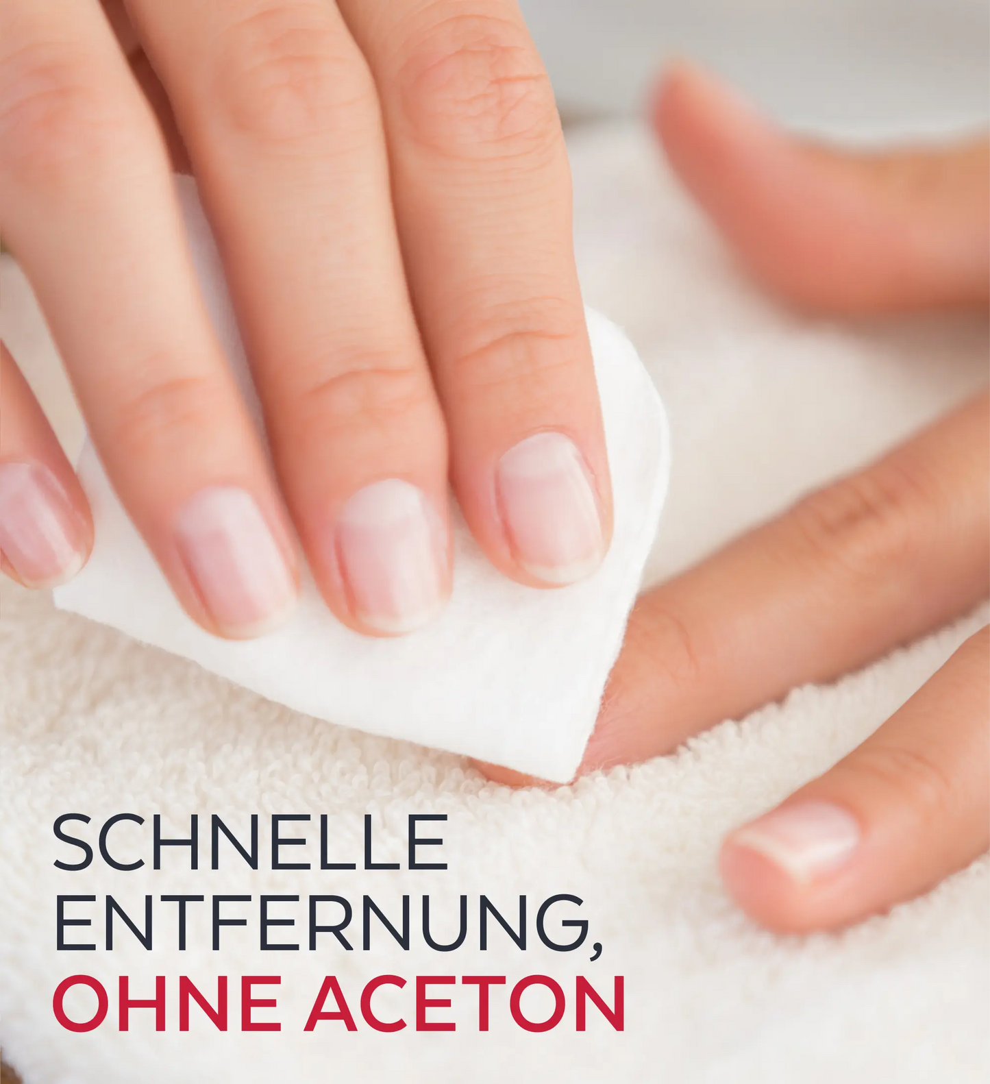 Legen Sie den getränkten Wattebausch auf den Nagel, halten Sie ihn einige Sekunden lang fest und reiben Sie ihn dann sanft ab, um alle Spuren von Nagellack zu entfernen.