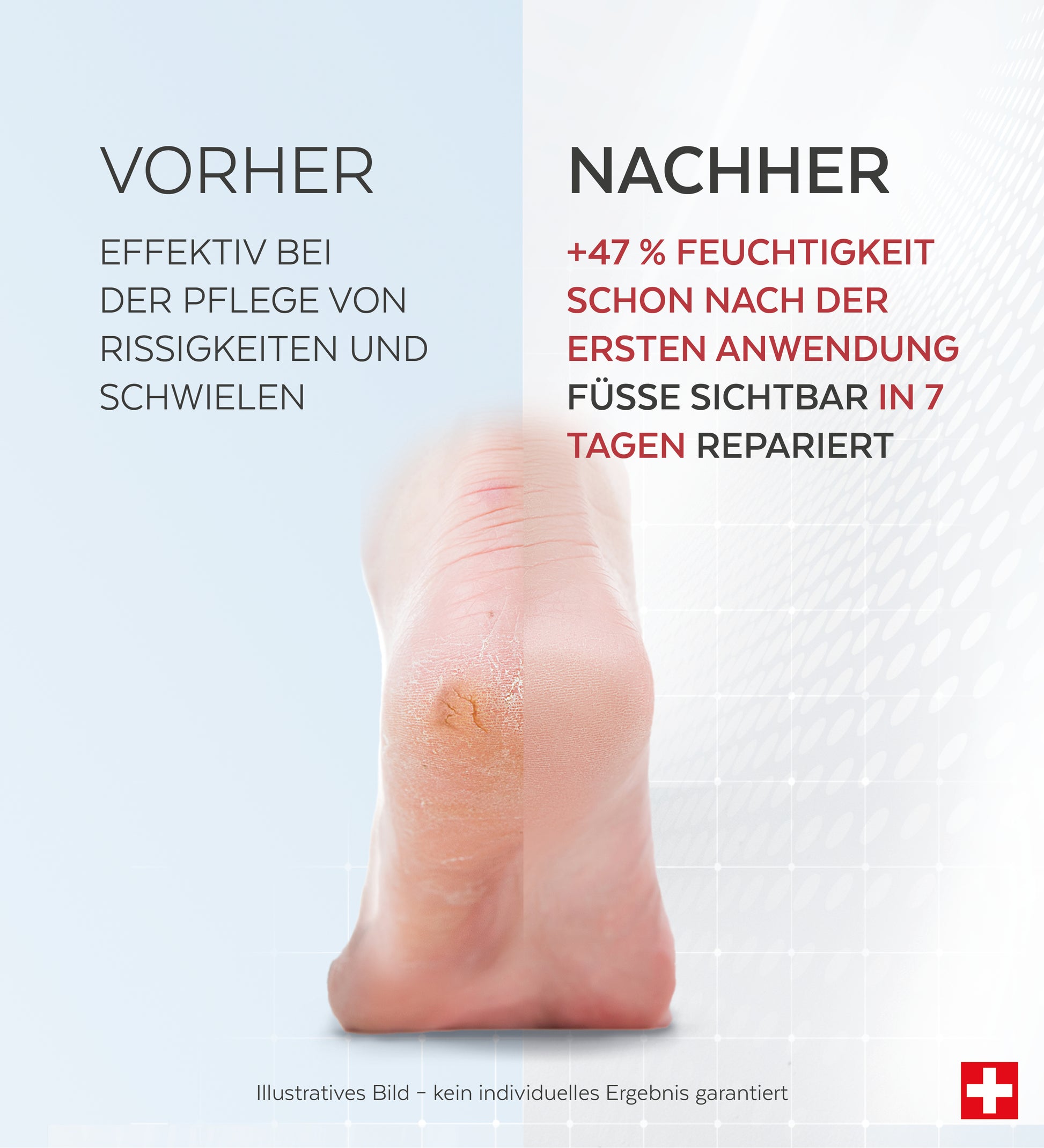 Diese Pflege sollte jeden Abend angewendet werden, bis die Schrunden und Risse vollständig repariert sind. Zur Vorbeugung können Sie das Serum auf trockene Stellen auftragen, die anfällig für Schrunden und Schwielen sind.
