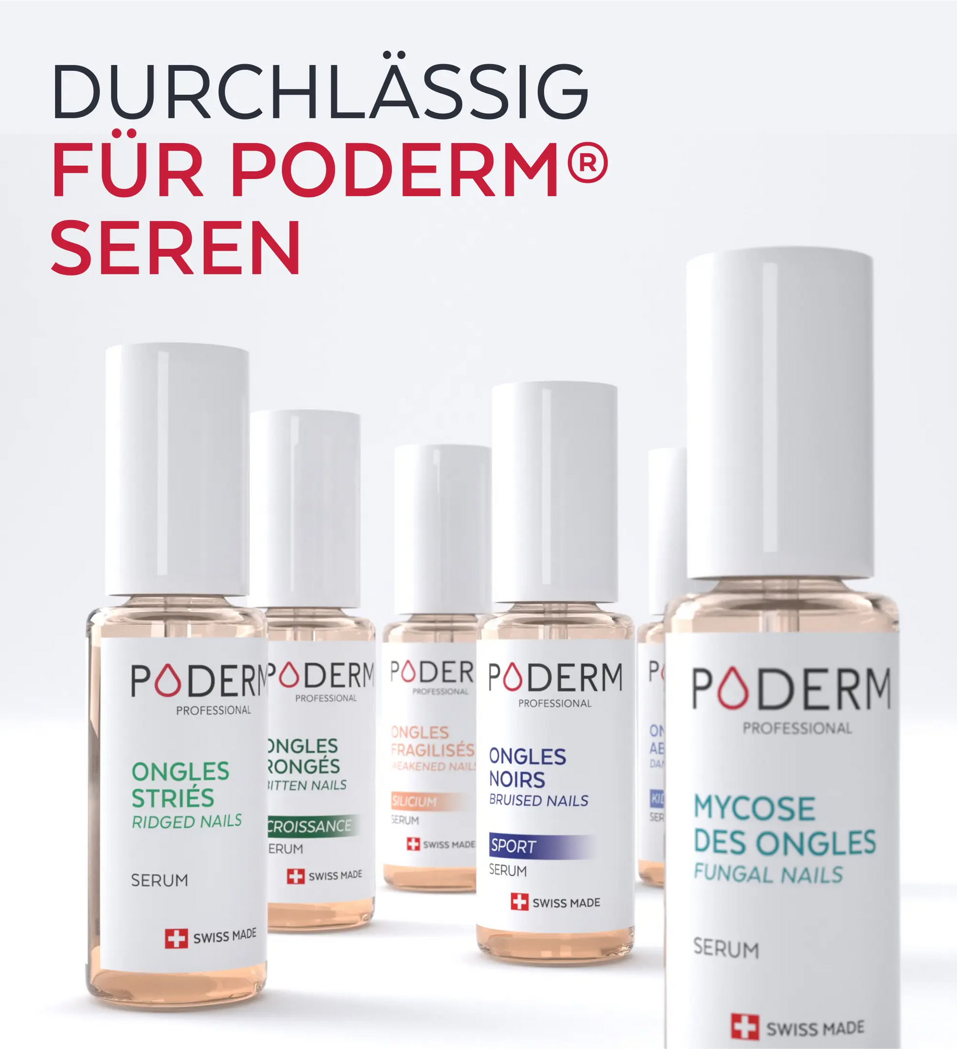 Verwenden Sie die PODERM® Nagelseren, um Ihre Nägel weiter zu pflegen.