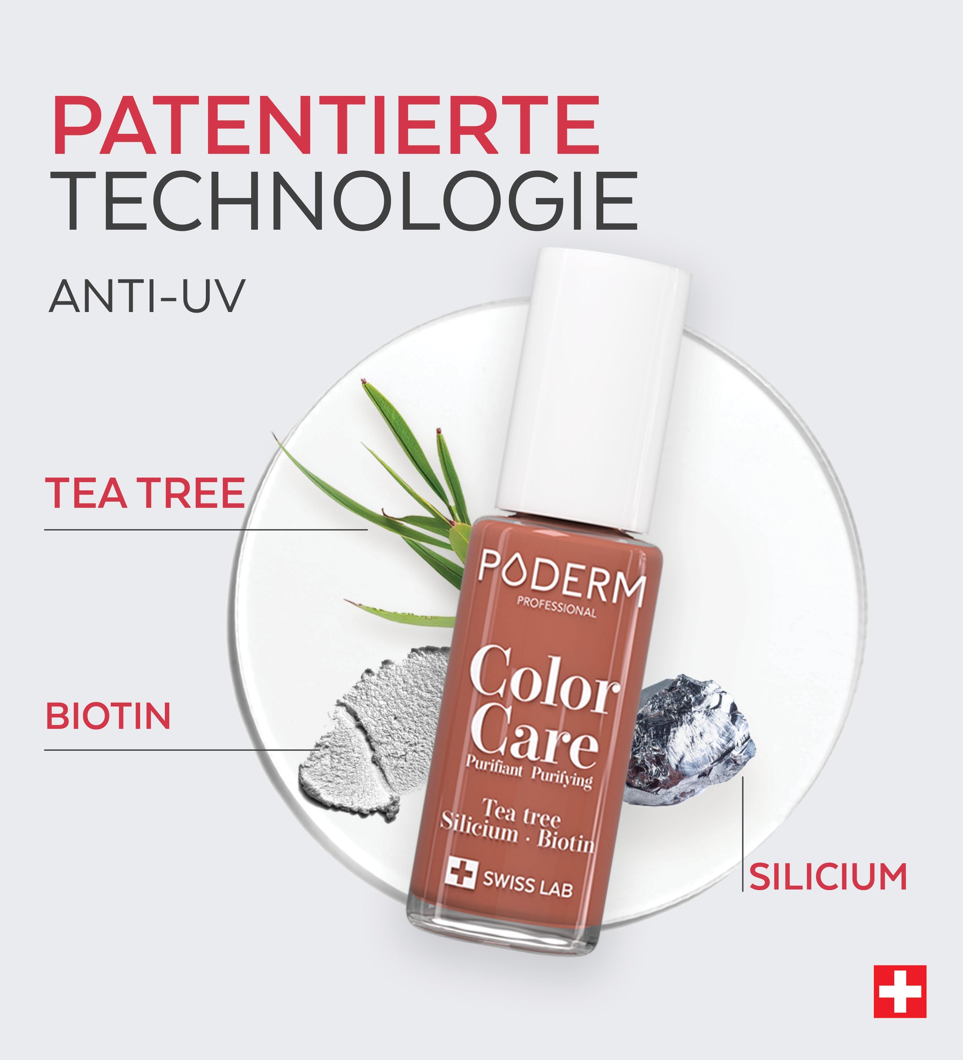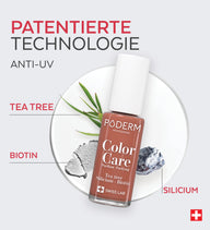 Color Care Lacke reinigen geschädigte Nägel, klären gelbe Nägel und fördern gesundes Nachwachsen. PODERM® Color Care Lacke sind atmungsaktiv und ermöglichen es den PODERM® Nagelseren, auch nach dem Auftragen in den Nagel einzudringen.