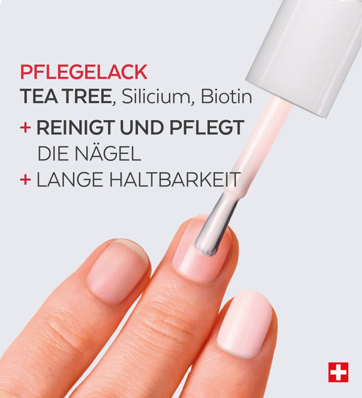 So können Sie das unschöne Aussehen des Nagels kaschieren, während Sie die Behandlung mit einem täglich aufgetragenen Serum fortsetzen. Ihre langanhaltende Formel ist mit Teebaum angereichert, der für seine reinigenden Eigenschaften bekannt ist, sowie mit Silizium und Biotin, die natürlich im Nagel vorkommen. Die Color Care Serie verschönert, reinigt und klärt Ihre Nägel.