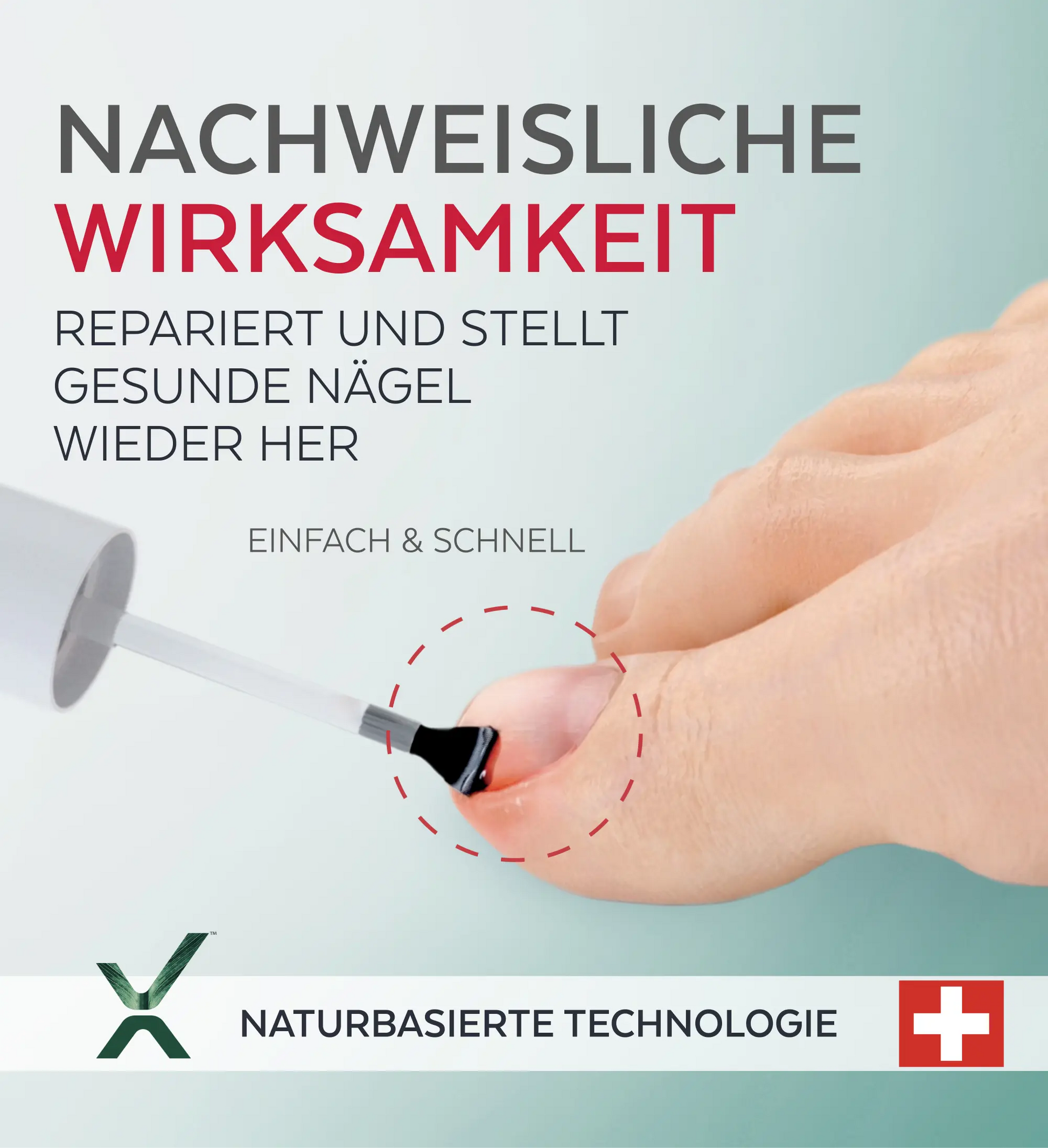 Unsere patentierte Technologie imitiert die natürlichen Abwehrkräfte, um gesunde Füße und Nägel wiederherzustellen.