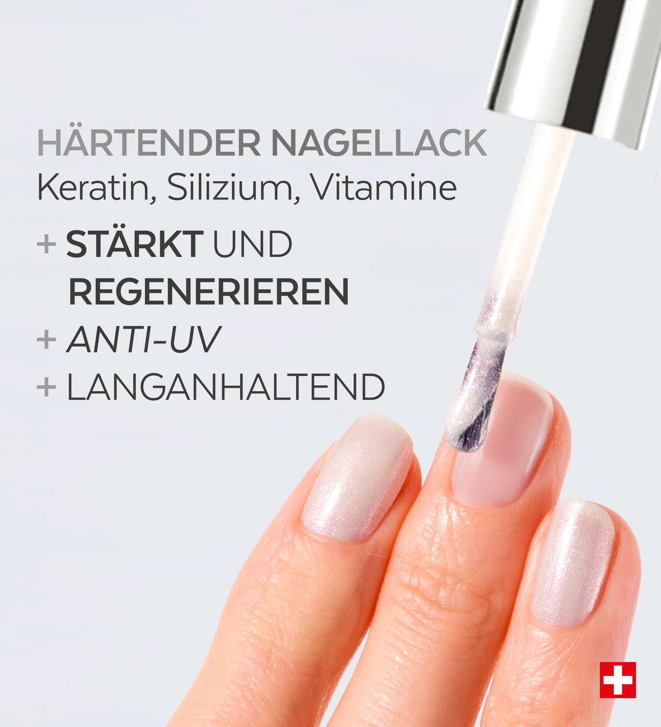 Durch die Förderung eines starken Nagelwachstums werden Ihre Nägel widerstandsfähiger gegen die täglichen Belastungen und wachsen gesünder und schneller. Das wiederholte Auftragen von semipermanentem Lack oder Gel sowie der Kontakt mit Chemikalien können die Nageloberfläche verändern und sie brüchig machen. Unsere Pflegelacke sind mit Keratin, Biotin und Silizium angereichert und stärken und schützen Ihre Nägel.