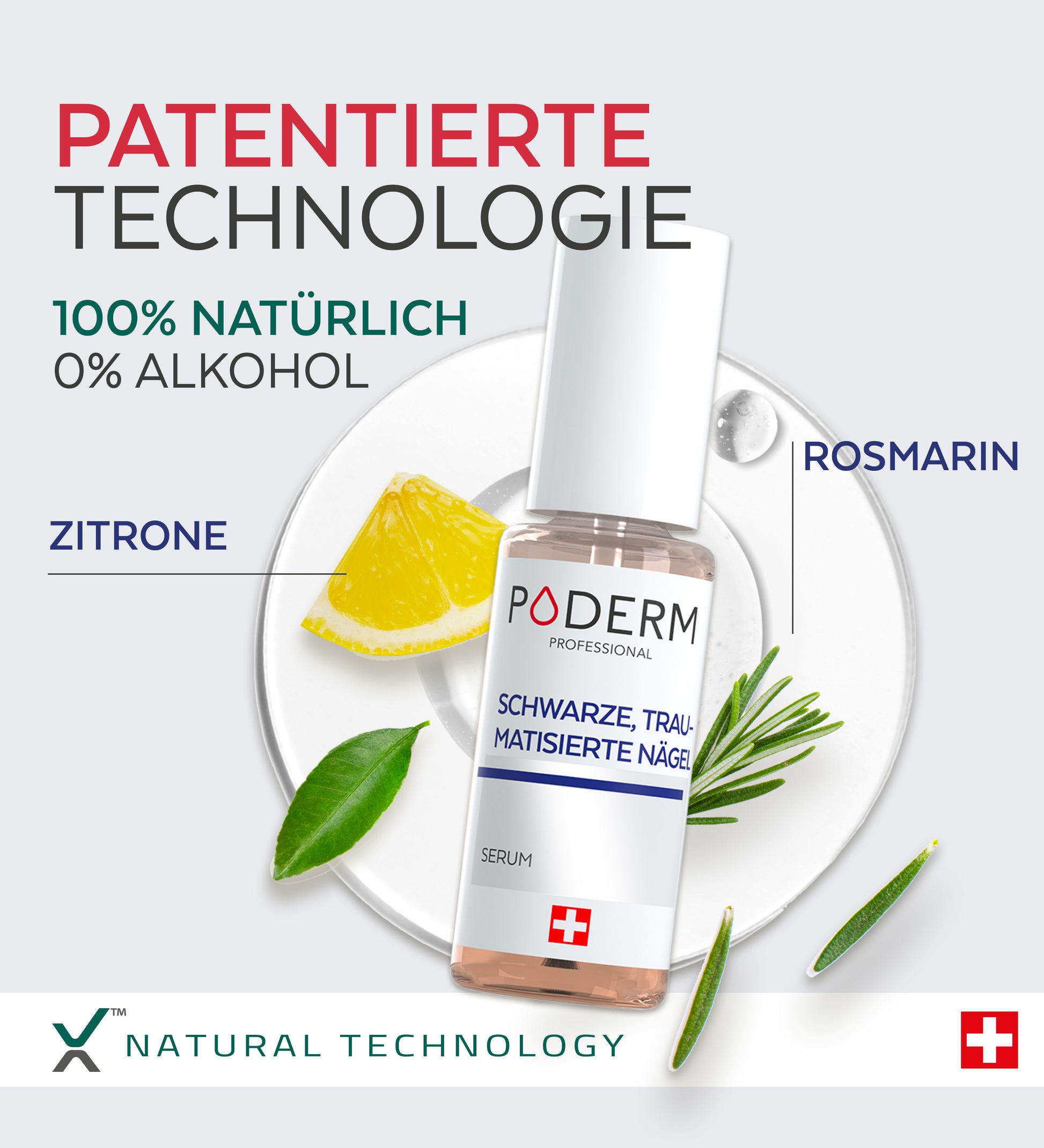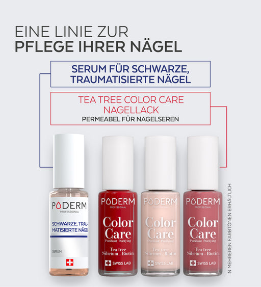 PODERM® Schwarze, traumatisierte Nägel Serum repariert und schützt blaue oder schwarze Nägel, die durch wiederholte Mikrostöße verursacht wurden, sei es beim Sport wie Fußball, Rugby, Trailrunning, Skifahren oder Laufen oder einfach durch alltägliche Aktivitäten.
