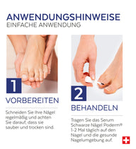 Tragen Sie das PODERM® Serum 1- bis 2-mal täglich auf den Nagel und seine Konturen auf. Lassen Sie es einwirken.