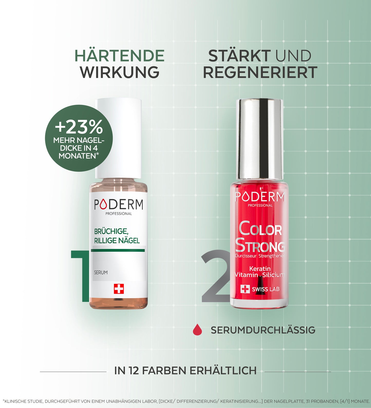 *Klinische Studie, durchgeführt von einem unabhängigen Labor, [Dicke/Differenzierung/Kornbildung…] der Nagelplatte, 31 Probanden, [4/1] Monate.