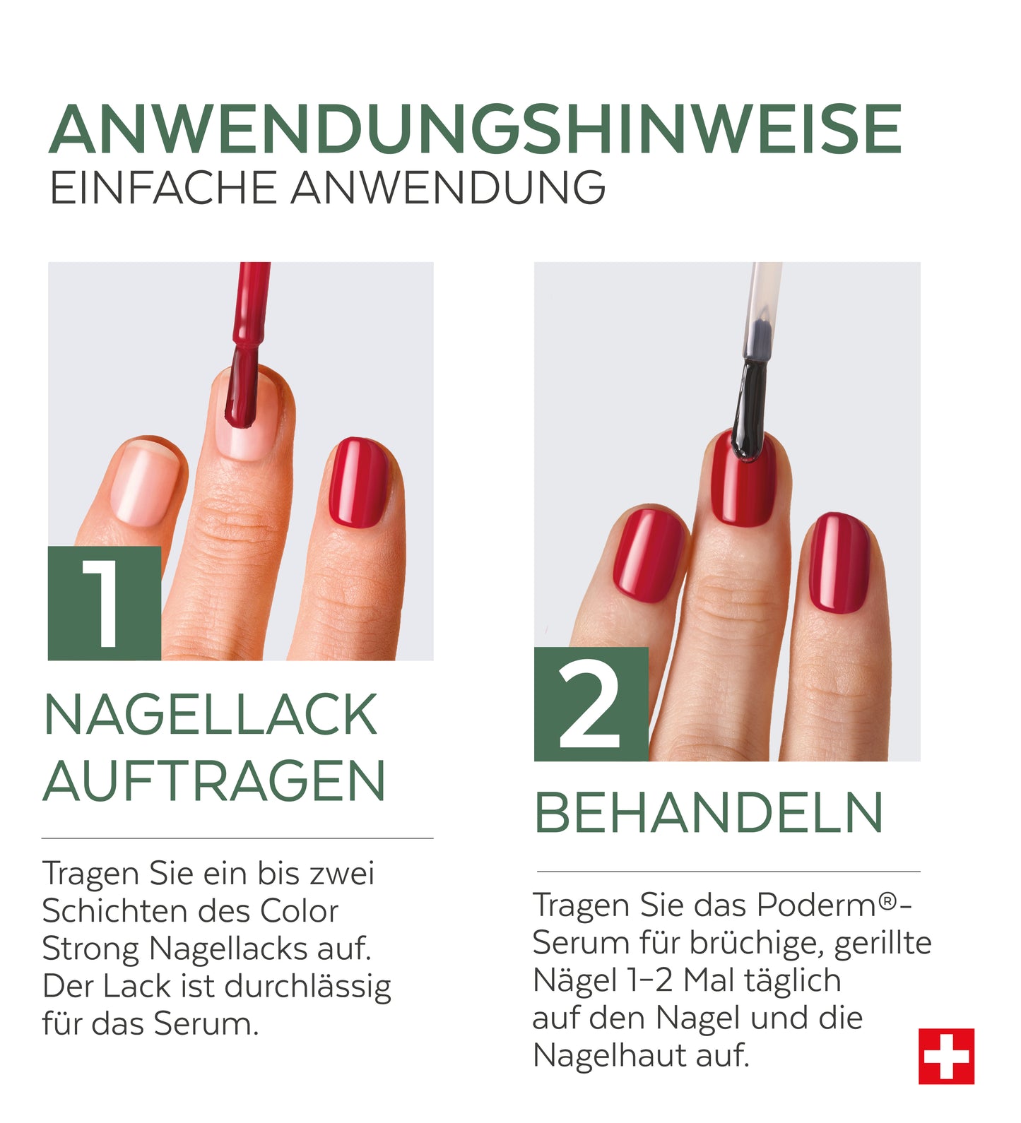 Verwenden Sie die PODERM® Nagelseren, um Ihre Nägel weiter zu pflegen.