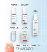 Das Komplettpaket - Nagelpilz PODERM® umfasst alle Produkte, die für eine wirksame und schnelle Bekämpfung von Nagelpilz erforderlich sind. Bei gemeinsamer Anwendung verstärken diese Pflegeprodukte die Anti-Pilz-Wirkung, verkürzen die Behandlungszeit und verhindern eine Ansteckung auf die Haut und andere Nägel.