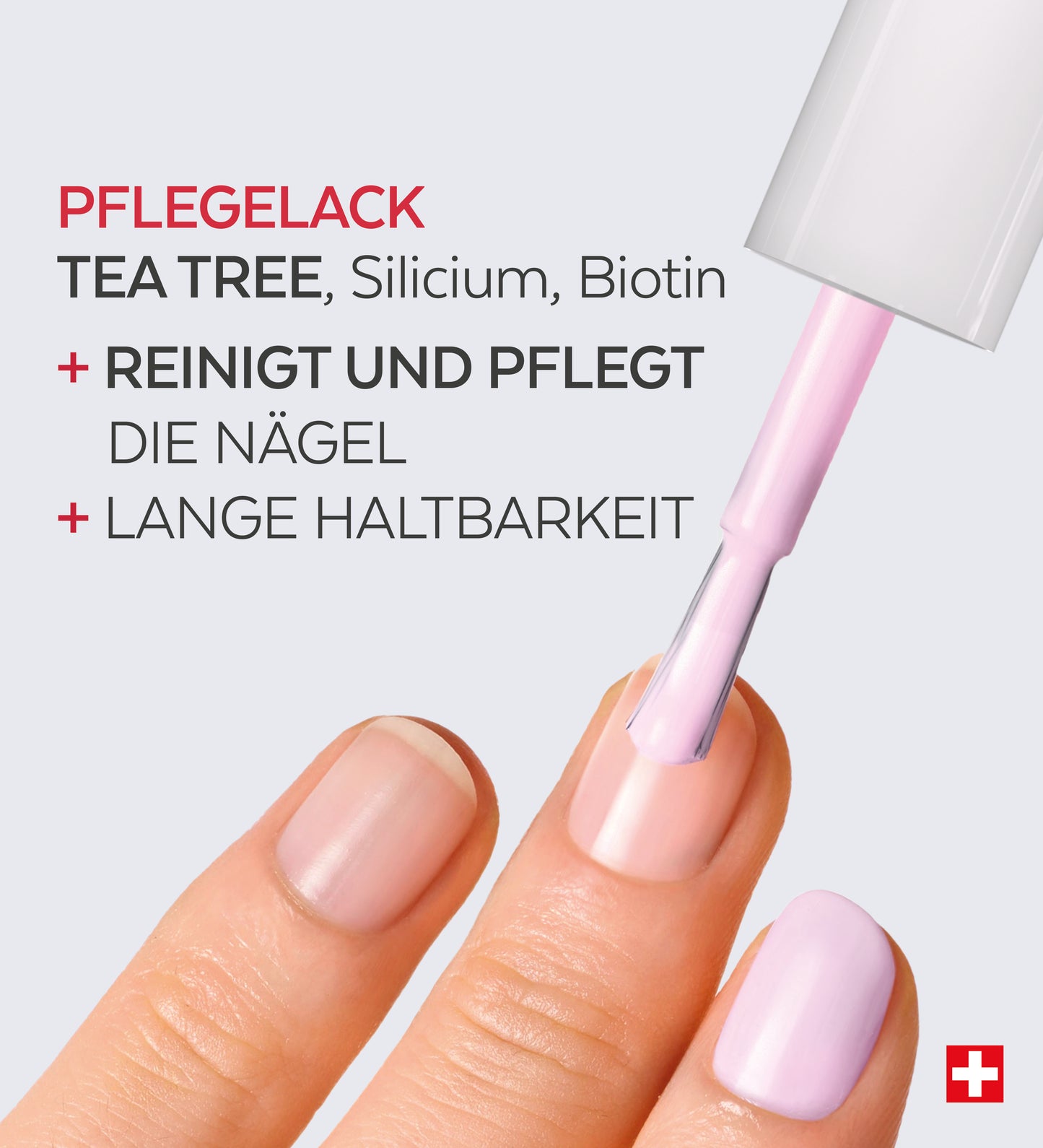So können Sie das unschöne Aussehen des Nagels kaschieren, während Sie die Behandlung mit einem täglich aufgetragenen Serum fortsetzen. Ihre langanhaltende Formel ist mit Teebaum angereichert, der für seine reinigenden Eigenschaften bekannt ist, sowie mit Silizium und Biotin, die natürlich im Nagel vorkommen. Die Color Care Serie verschönert, reinigt und klärt Ihre Nägel.