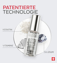Das wiederholte Auftragen von semipermanentem Lack oder Gel und der Kontakt mit Chemikalien können die Nageloberfläche verändern und sie brüchig machen. Dieser Top Coat ist mit Keratin, Biotin und Silizium angereichert und stärkt und schützt Ihre Nägel, während er ihnen einen strahlenden Glanz verleiht.