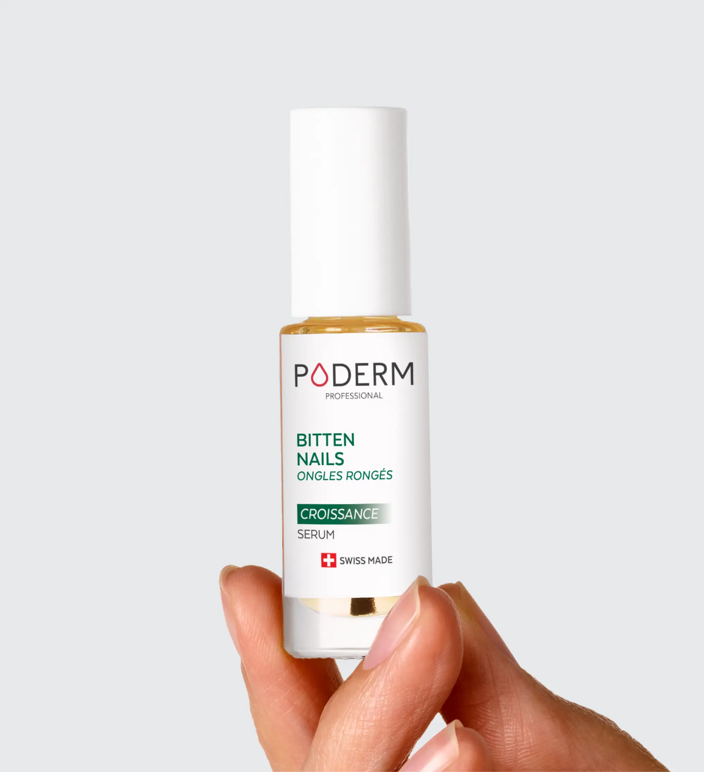 PODERM® Bitten Nails Serum is the ideal solution for promoting nail growth. This natural serum makes them stronger and more resistant. It smoothes the skin around the nail, reducing the urge to bite nails and cuticles.