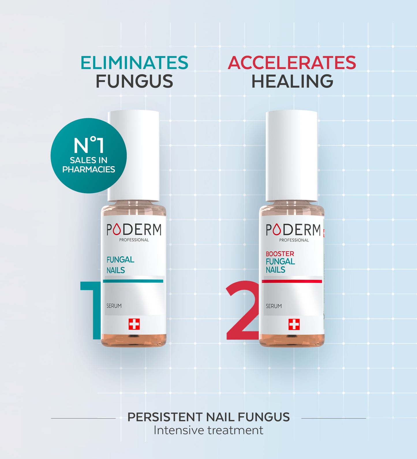 The Duo express - Fungal Nails PODERM® contains a Nail Fungus Serum to treat and a Booster Serum to speed up the action of the treatment.