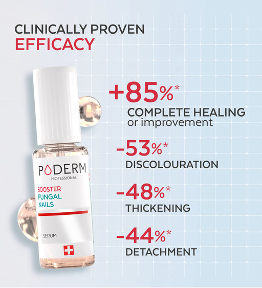 To keep your skin and toenails in good health, we recommend that you see a chiropodist once or twice a year. For both prevention and treatment, PODERM® has developed natural serums to improve the appearance of your nails while respecting their matrix. Nail improvement is visible from the first application of PODERM® Nail Mycosis Serum. It is nevertheless necessary to apply the product until the nail has completely regrown. This can take several months: it takes between one and four months for a fingernail and between six and twelve months for toenails to grow back completely. Booster Serum helps to speed up the treatment of fungal infections and achieve satisfactory results much more quickly.