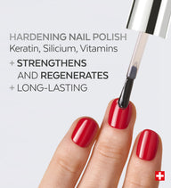 Repeated application of semi-permanent nail varnish or gel, or exposure to chemical products can damage the nail surface, making it more fragile. Enriched with keratin, biotin and silicon, this top coat strengthens and protects your nails, while giving them a radiant shine.