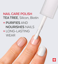 This means you can conceal the unsightly appearance of the nail while continuing the treatment with a serum applied every day. Their long-lasting formula is enriched with Tea Tree, renowned for its purifying properties, as well as Silicium and Biotin, naturally present in the nail. The Color Care range beautifies, purifies and purifies your nails.