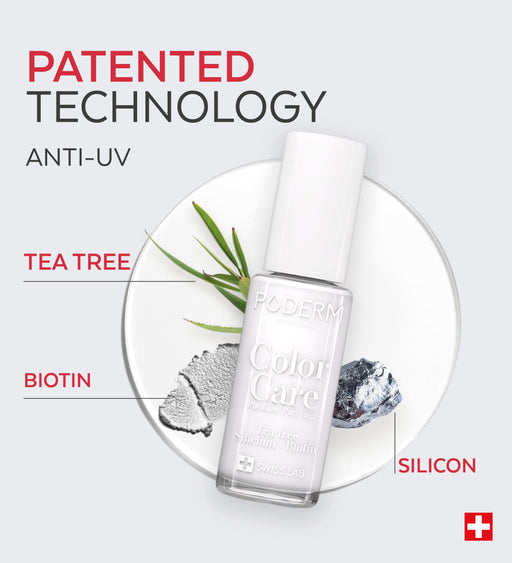 Color Care nail polishes purify damaged nails, clarify yellow nails and encourage healthy nail growth. PODERM® Color Care polishes are breathable and allow PODERM® nail serums to penetrate the nail even after application.
