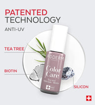 Color Care nail polish has been specially designed to correct and conceal imperfections on yellow, damaged and streaked nails, which can be caused by fungal infections, gel or semi-permanent nail polish, or the use of chemical products such as hydroalcoholic gel. Its breathable, permeable formula allows PODERM serums to penetrate without interrupting a treatment in progress.