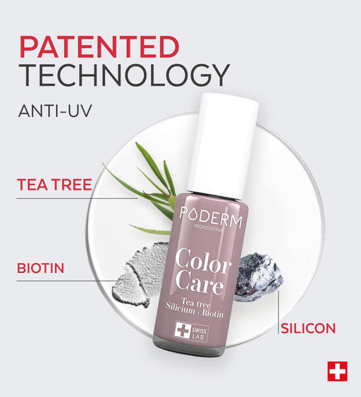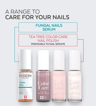 Color Care nail polishes purify damaged nails, clarify yellow nails and promote healthy regrowth. PODERM® Color Care Nail Lacquers are breathable and allow PODERM® Nail Serums to penetrate the nail even after application.
