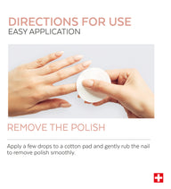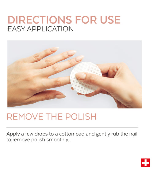 To use PODERM® Extra Gentle Nail Polish Remover, simply pour a few drops of the product onto a cotton pad, then apply the pad to your nails and rub gently to remove the nail polish. It's suitable for all nail types, both hands and feet.