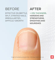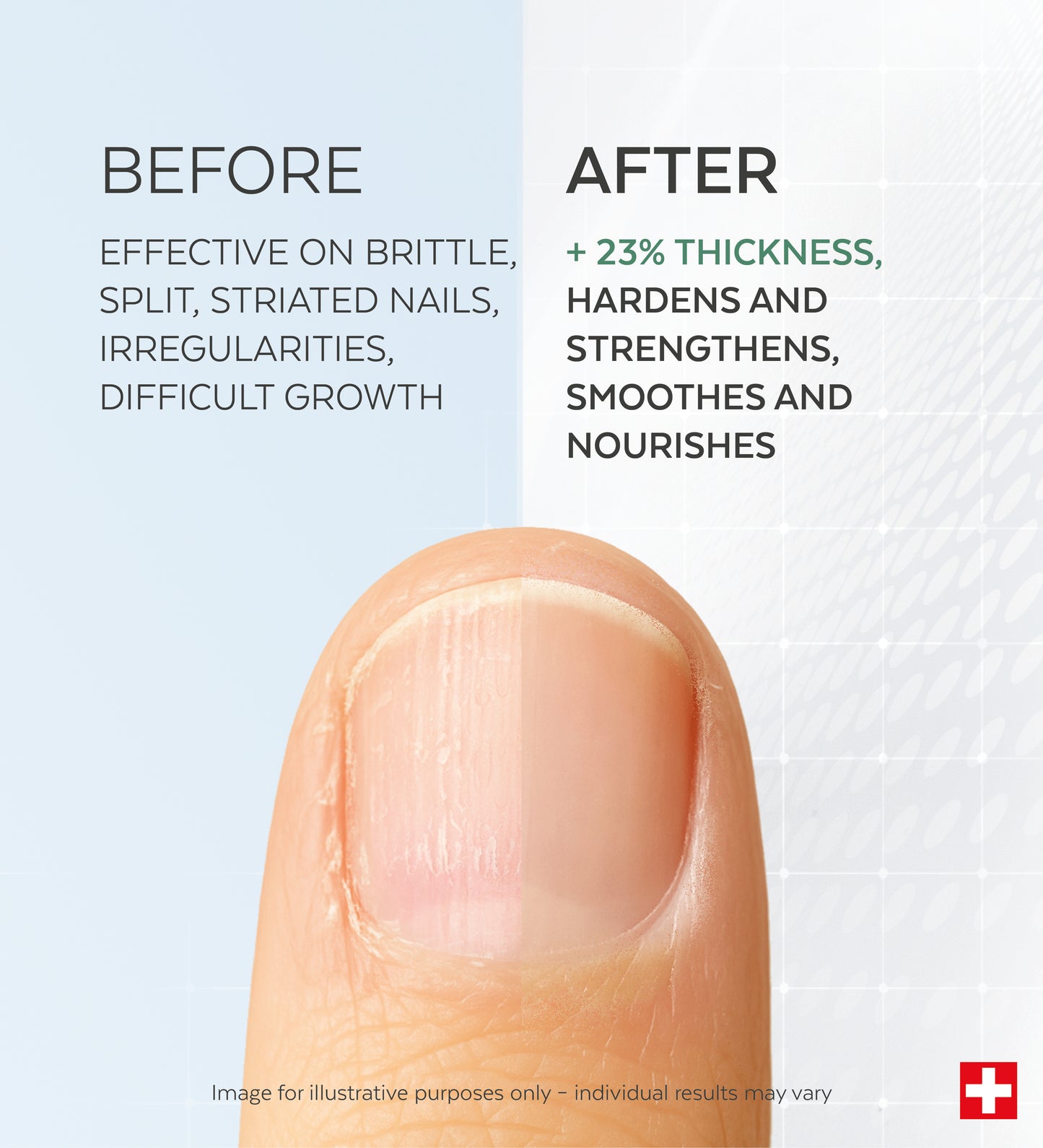 *Clinical test conducted by an independent laboratory on [thickness / differentiation / cornification…] of the nail plate, 31 volunteers, [4/1] months.