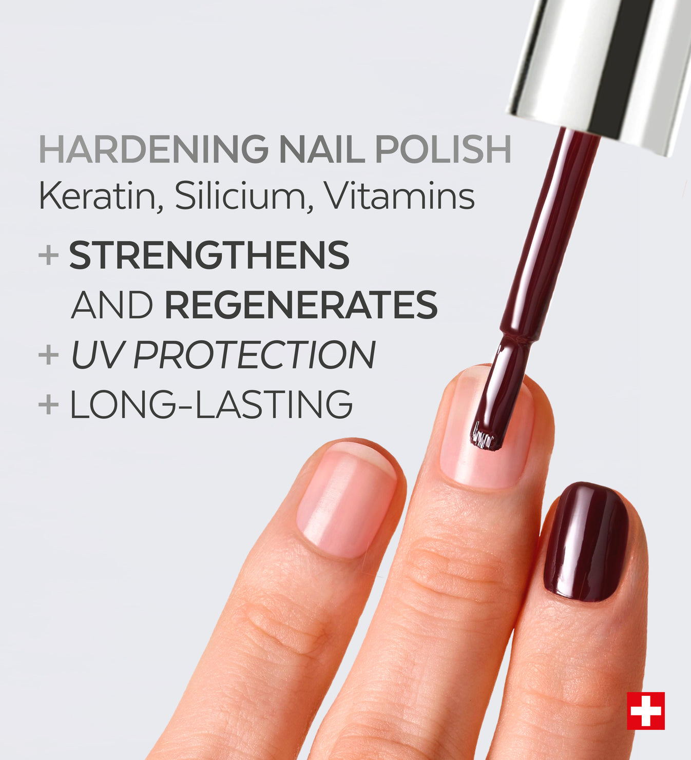 Color Strong PODERM® nail lacquers strengthen nails that are fragile, soft, ridged or prone to breaking or splitting. Thanks to their breathable formula, these are the only hardening nail varnishes that can be used in conjunction with PODERM® nail serums. A deep black red, perfect for a mysterious, elegant look.