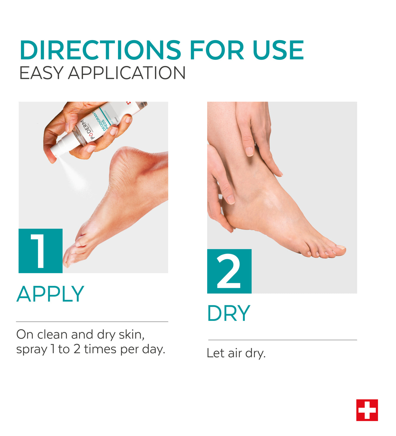 Spray the instep, nails, between the toes and on the soles of the feet.