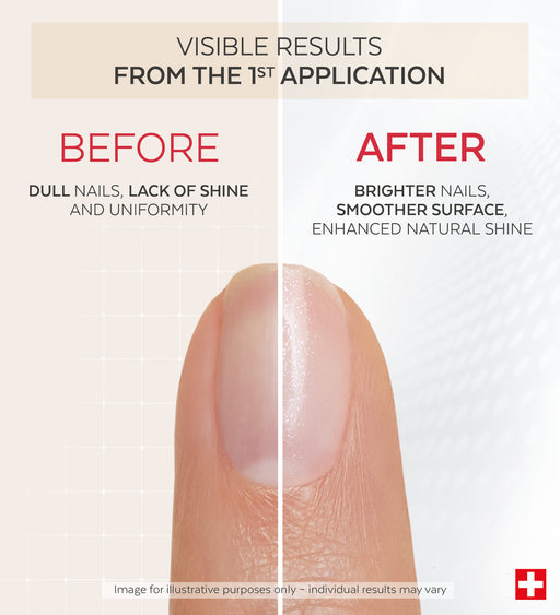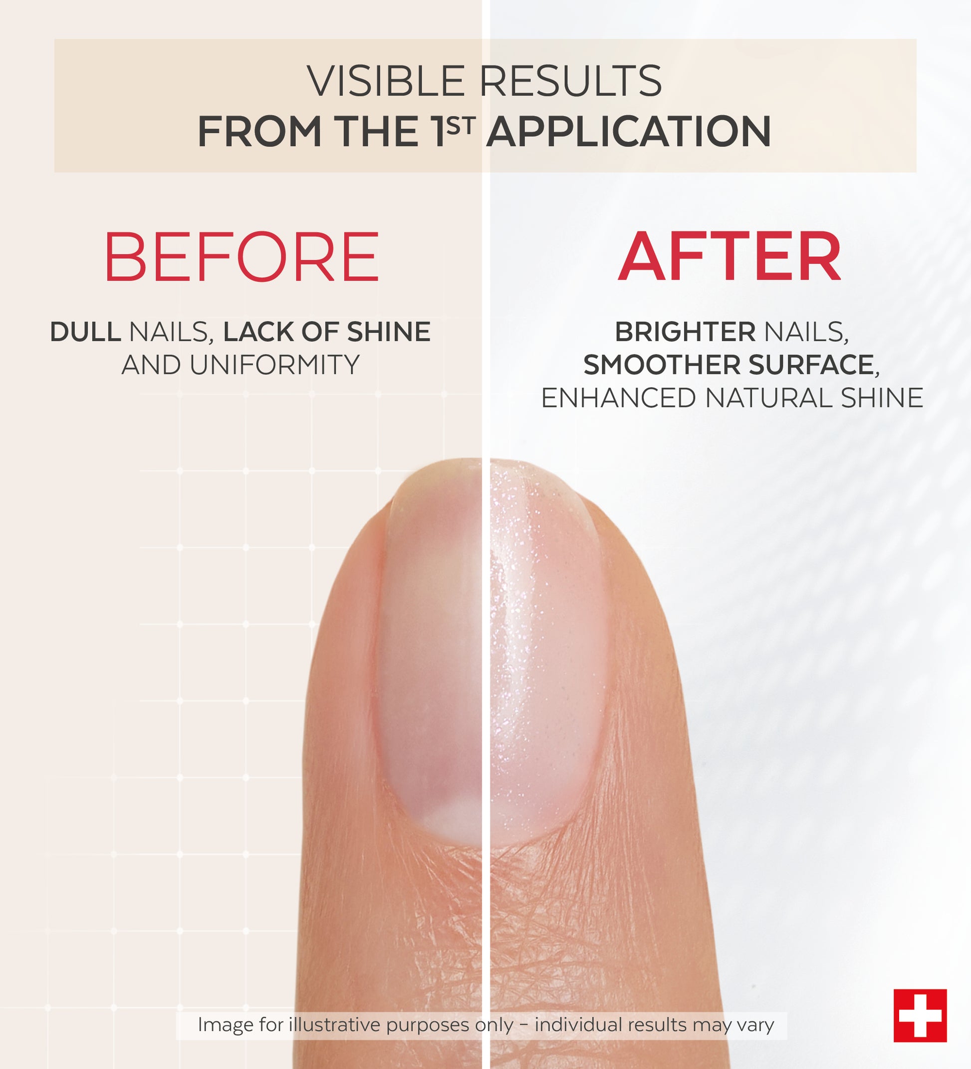 Its formula, enriched with micro-minerals selected for their light-reflecting properties, enhances the nail’s natural radiance. They help to progressively smooth the nail surface and improve its texture, application after application, while boosting natural shine without a covering effect.