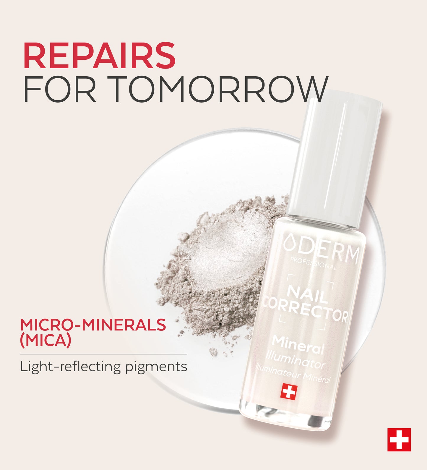 The PODERM® Nail Corrector range consists of 6 references designed to deliver a natural look and improve the appearance of nails on a daily basis. The Nail Corrector Nail Polish - Mineral Illuminator can be used alone as a corrective treatment polish or as part of a routine alongside PODERM® repairing serums, to support long-term nail quality.