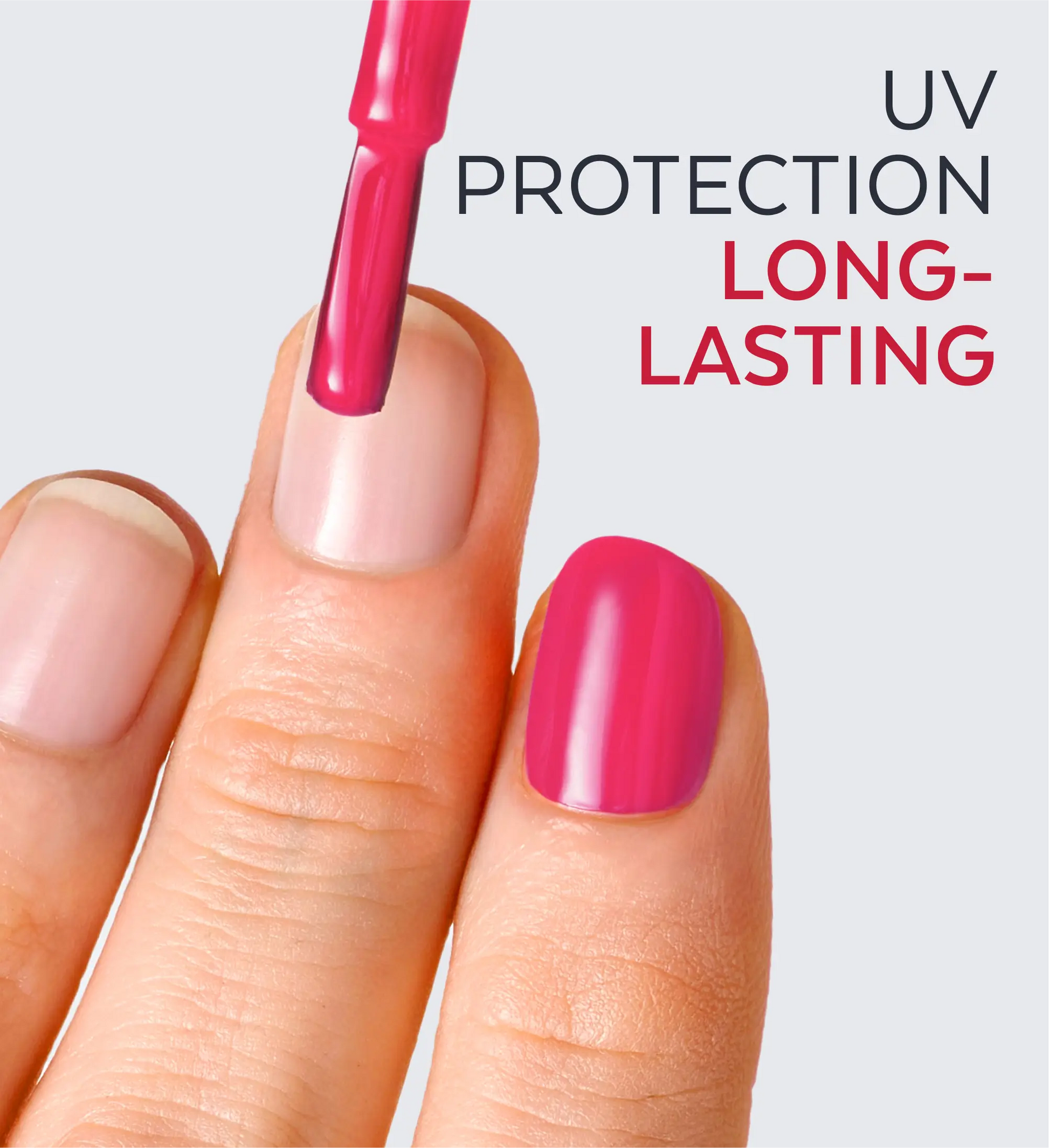 Color Care and Color Strong nail polishes offer UV protection to protect your nails and the skin under your nails from damage caused by the sun's rays (excluding top coat, base coat, vitality gloss and shine gloss).
