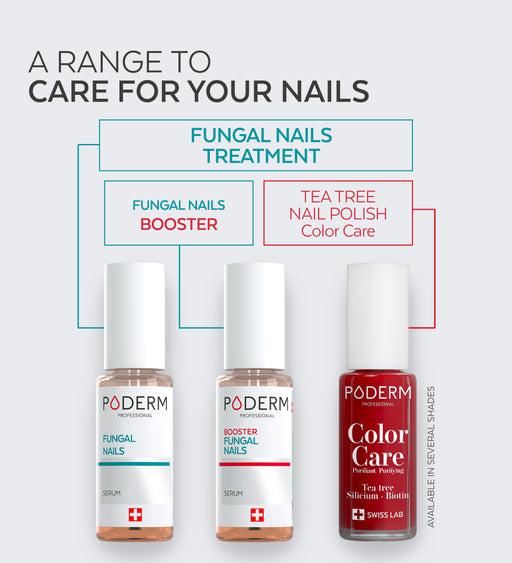 The PODERM® Color Care Nail Fungus Duo Pack combines two essential products for the effective, aesthetic treatment of nails damaged by fungal infections. This duo includes Nail Fungus Serum to treat and Color Care Nail Polish to camouflage and care for damaged nails.