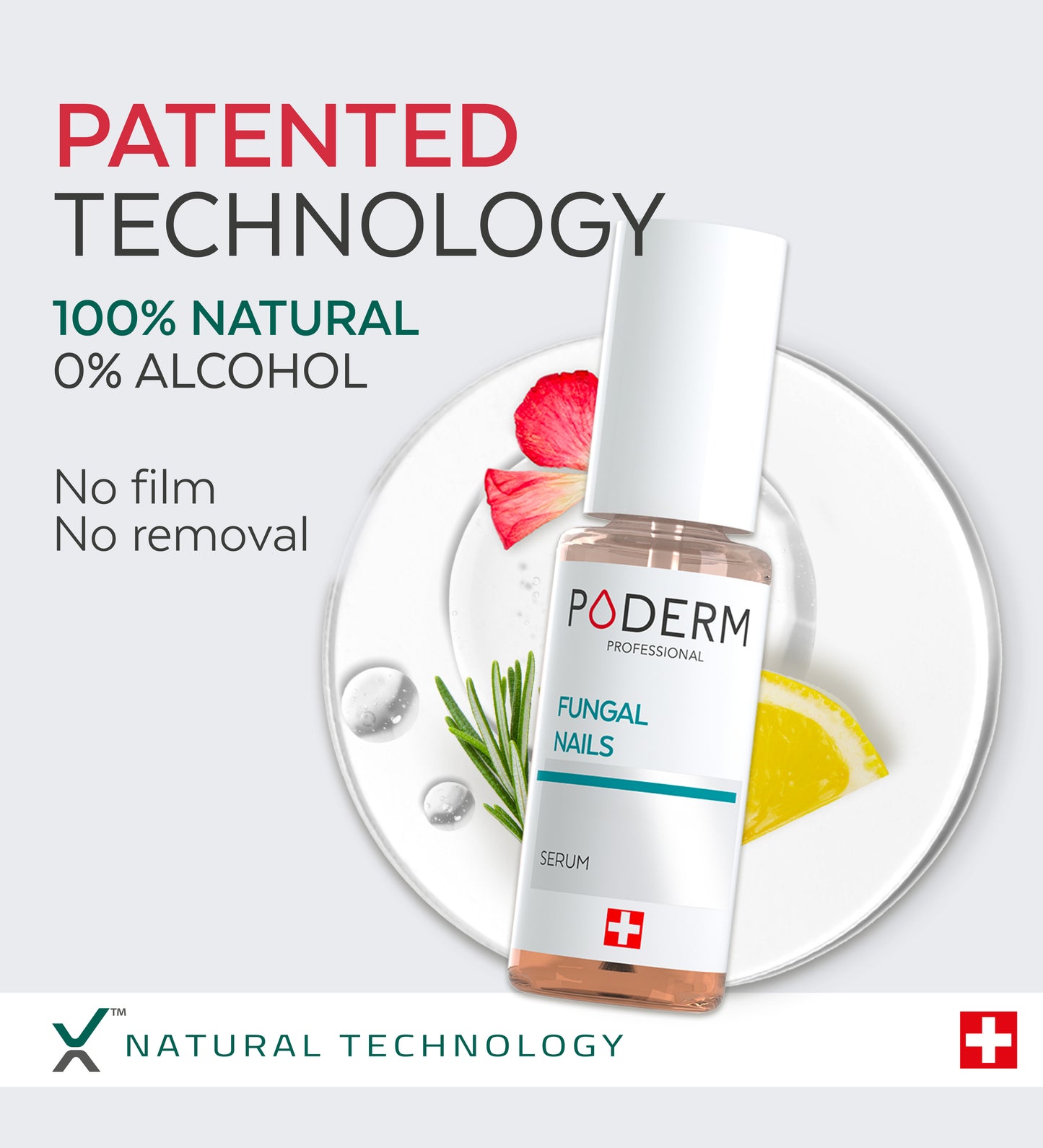 Unlike other nail fungus treatments, PODERM® Nail Fungus is not a varnish, but a serum with a unique formula that forms a film over the nail.
