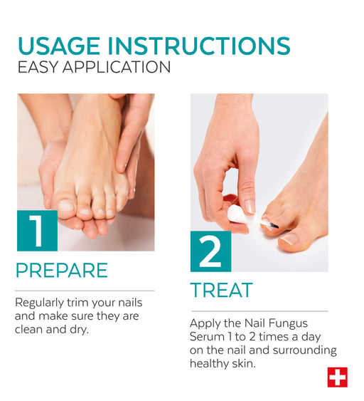 In cases of advanced fungal infection affecting two-thirds of the nail surface and causing deformities, in addition to the Nail Fungus Treatment Serum, apply the Nail Fungus Booster Serum twice a week before the Nail Fungus Serum.