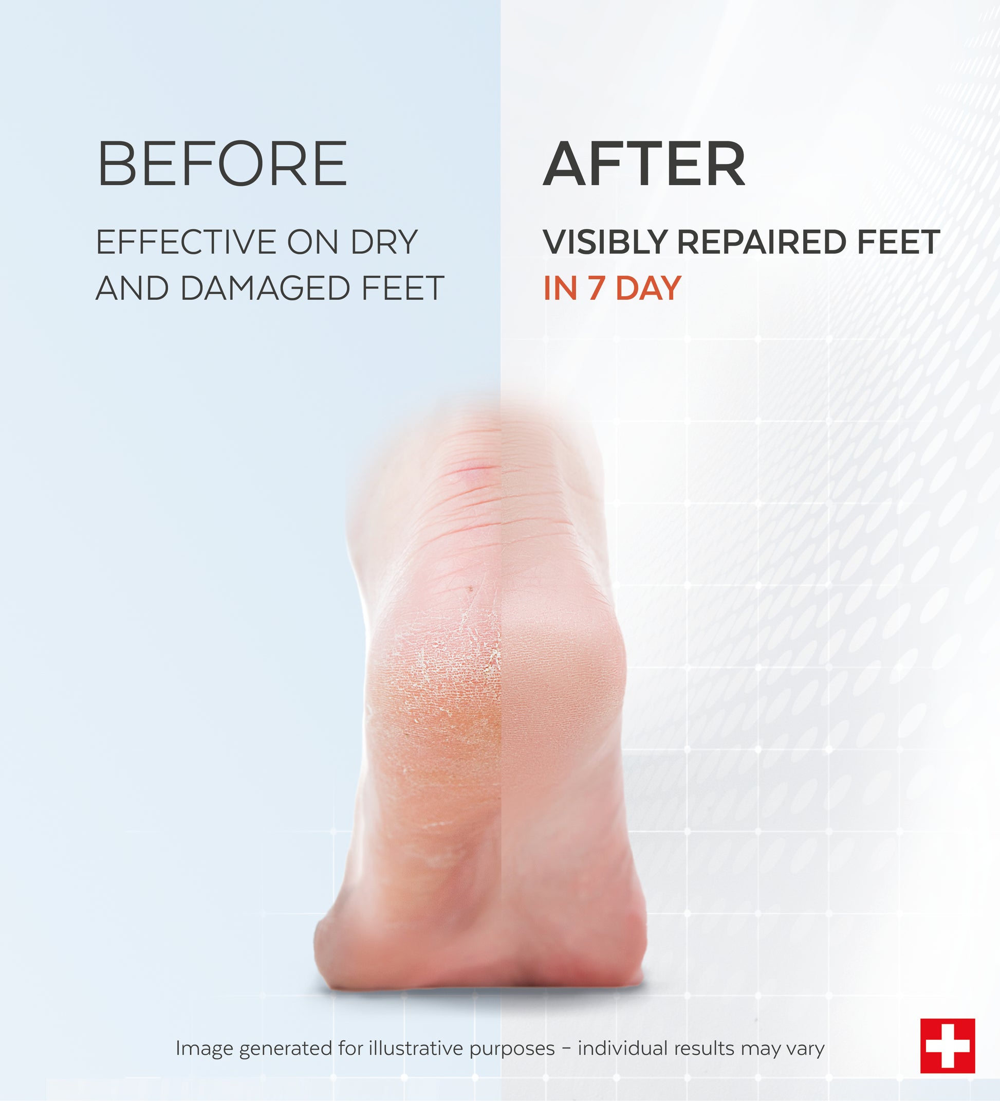 Apply the serum to clean, dry feet, concentrating on dry areas and heels. It is recommended to use the serum morning and night until the desired result is achieved or until the skin on the feet and heels is completely repaired.