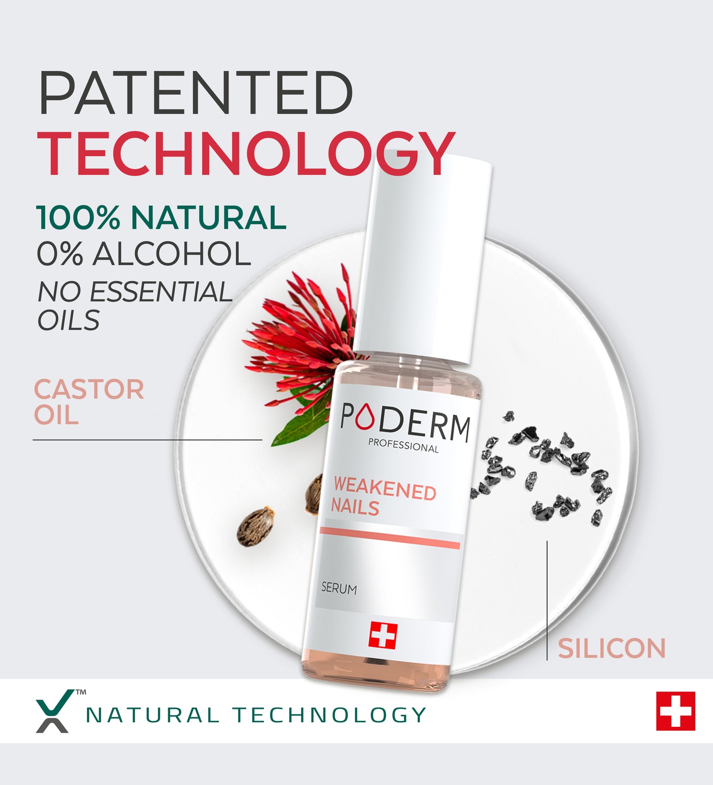 PODERM® Weakened Nails Serum Silicium is a complete treatment designed to protect and strengthen fragile nails. Ideal for preventing nail loss, it reduces the appearance of spots (brown, black, bluish or yellow) and corrects irregularities such as streaks, splitting and breakage.