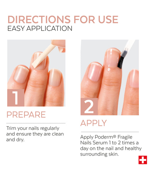Apply PODERM® Serum 1 or 2 times a day to the nail and its contour (cuticles and grooves).