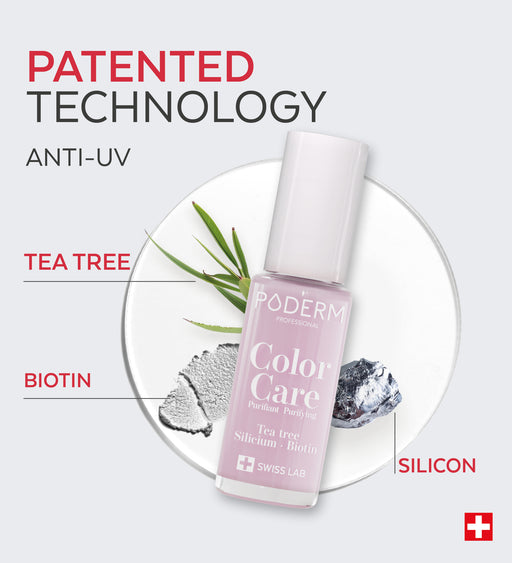 Color Care polishes purify damaged nails and brighten yellowed nails. Color Care PODERM® polishes are breathable and allow PODERM® nail serums to penetrate the nail even after application.