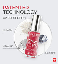 The Color Strong range of fortifying nail polishes is made up of 8 luminous colours for every occasion, plus a base coat and a top coat for a complete manicure. Color Strong nail polishes are easy to remove thanks to PODERM® Extra Gentle Remover , which removes nail polish while leaving nails shiny and nourished thanks to its acetone-free formula.