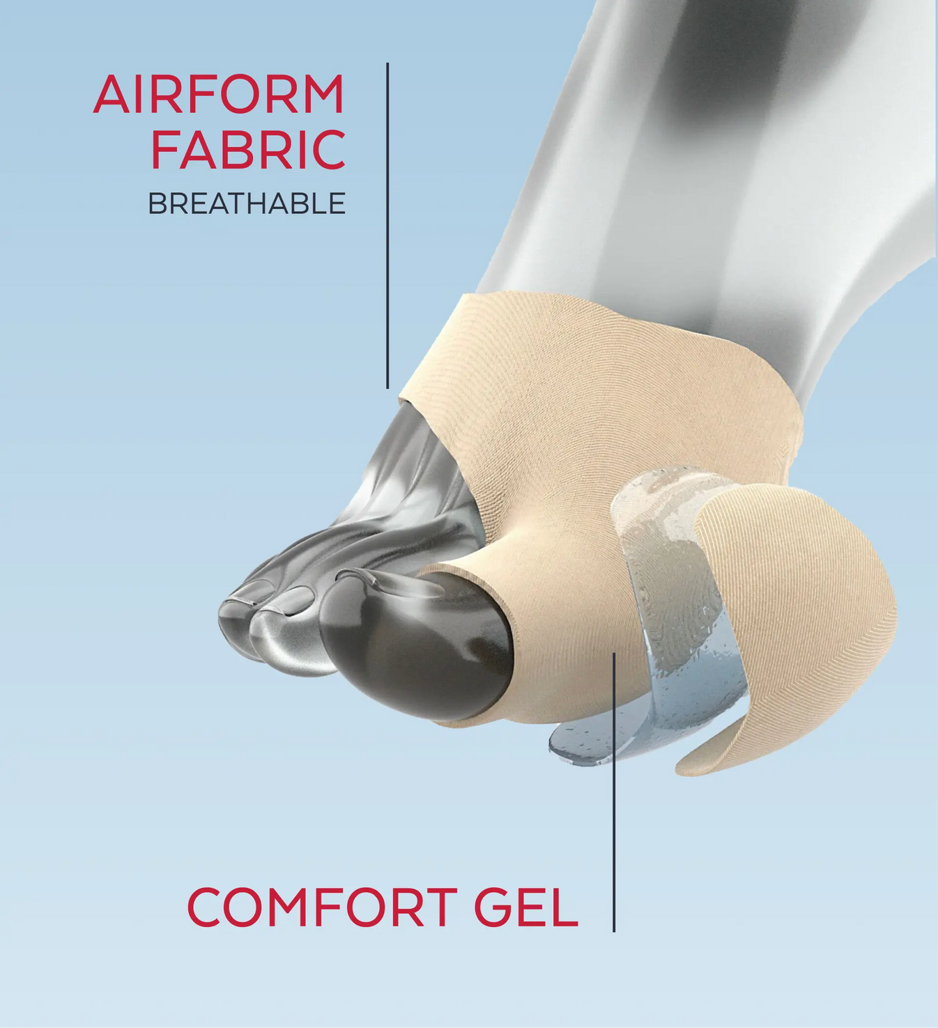 Suitable for all types of footwear, it is available in two sizes for a perfect fit (see size guide). Deformity of the first metatarsophalangeal joint (Hallux Valgus) causes imbalance in the forefoot and excessive pressure on the sole of the foot. It is therefore crucial to protect these two areas.