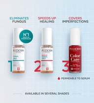 The Color Care Nail Fungus Trio Pack from PODERM® combines three essential products for effective, aesthetic treatment of nails damaged by fungal infections. This trio includes Nail Fungus Serum to treat, Booster Serum to intensify the action of the treatment, and Color Care Nail Polish to camouflage and care for damaged nails.