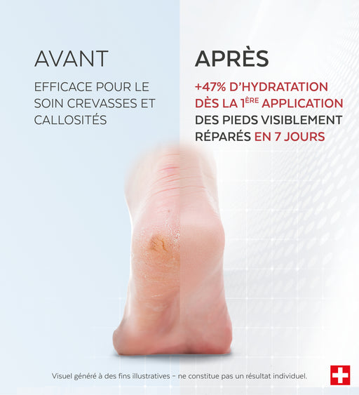 Ce soin doit être utilisé chaque soir jusqu’à la réparation complète des crevasses et des fissures. En prévention, vous pouvez appliquer le Sérum sur les zones sèches susceptibles de développer des crevasses et des callosités.