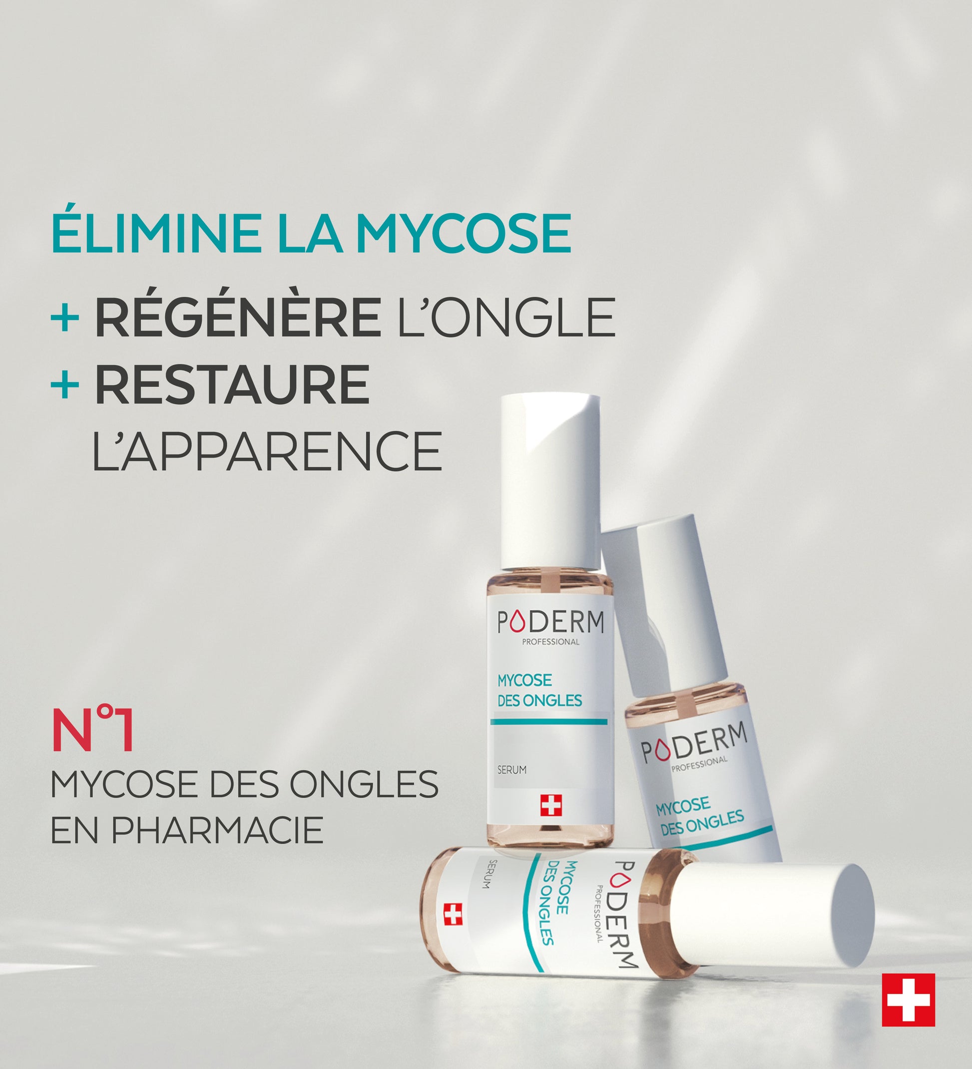 Mycose des ongles PODERM® – Indication : traitement topique de la mycose de l’ongle. Ce dispositif médical est un produit de santé réglementé qui porte, au titre de cette réglementation, le marquage CE. Demandez conseil à votre podologue ou votre pharmacien et lire attentivement la notice avant utilisation. Swiss Footcare Laboratories. 10/2024