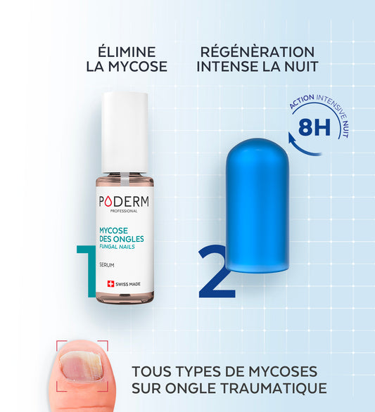 Poderm a mis au point des solutions efficaces aux ingrédients concentrés pour un traitement efficace et rapide de la mycose des ongles avec les produits anti mycose de l'ongle. Le sérum Mycose des ongles est la solution n°1 pour traiter la mycose des ongles. Le produit agit mécaniquement en formant un film lipidique protecteur qui élimine la mycose et favorise le renouvellement naturel de l’ongle.