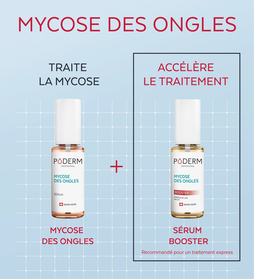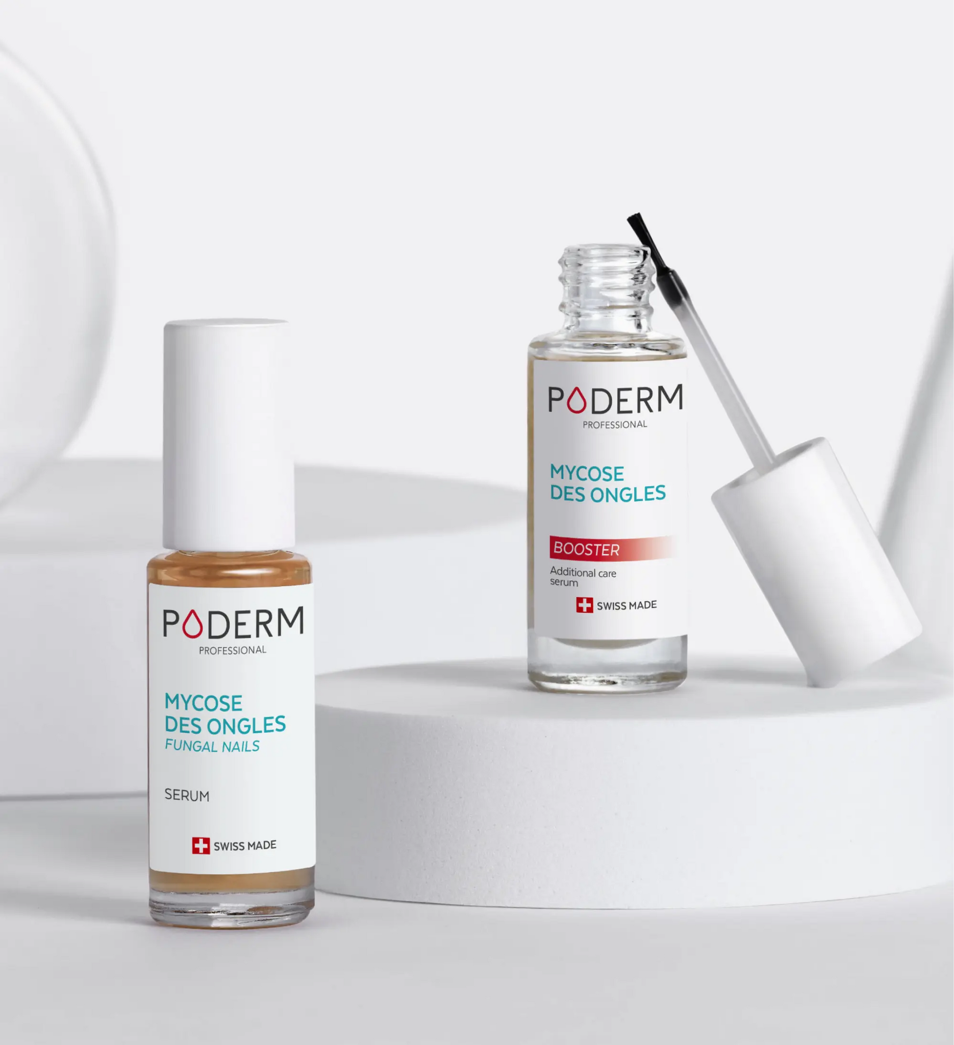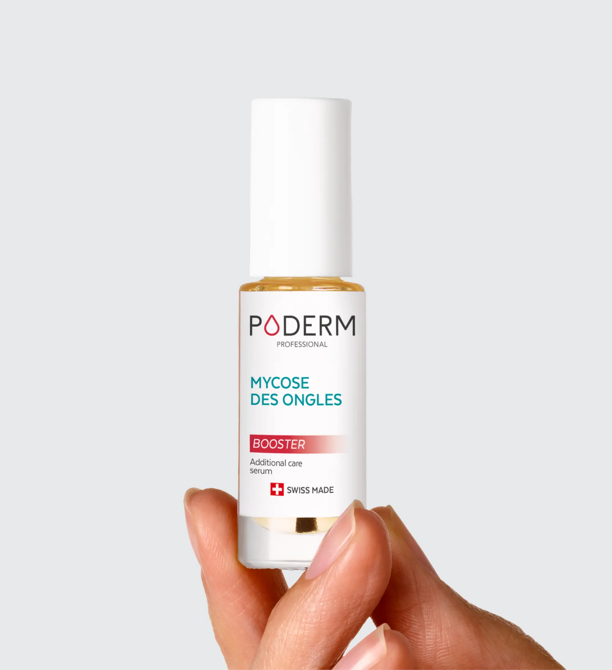 Le sérum Booster - Mycose des ongles PODERM® s'utilise uniquement en complément du sérum Mycose des ongles PODERM® pour accélérer le traitement et activer le processus de réparation des ongles jaunes et abîmés par les mycoses.