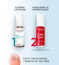 Lo smalto Color Care Tea Tree nasconde le imperfezioni dell'unghia continuando a trattarle con i sieri PODERM®.