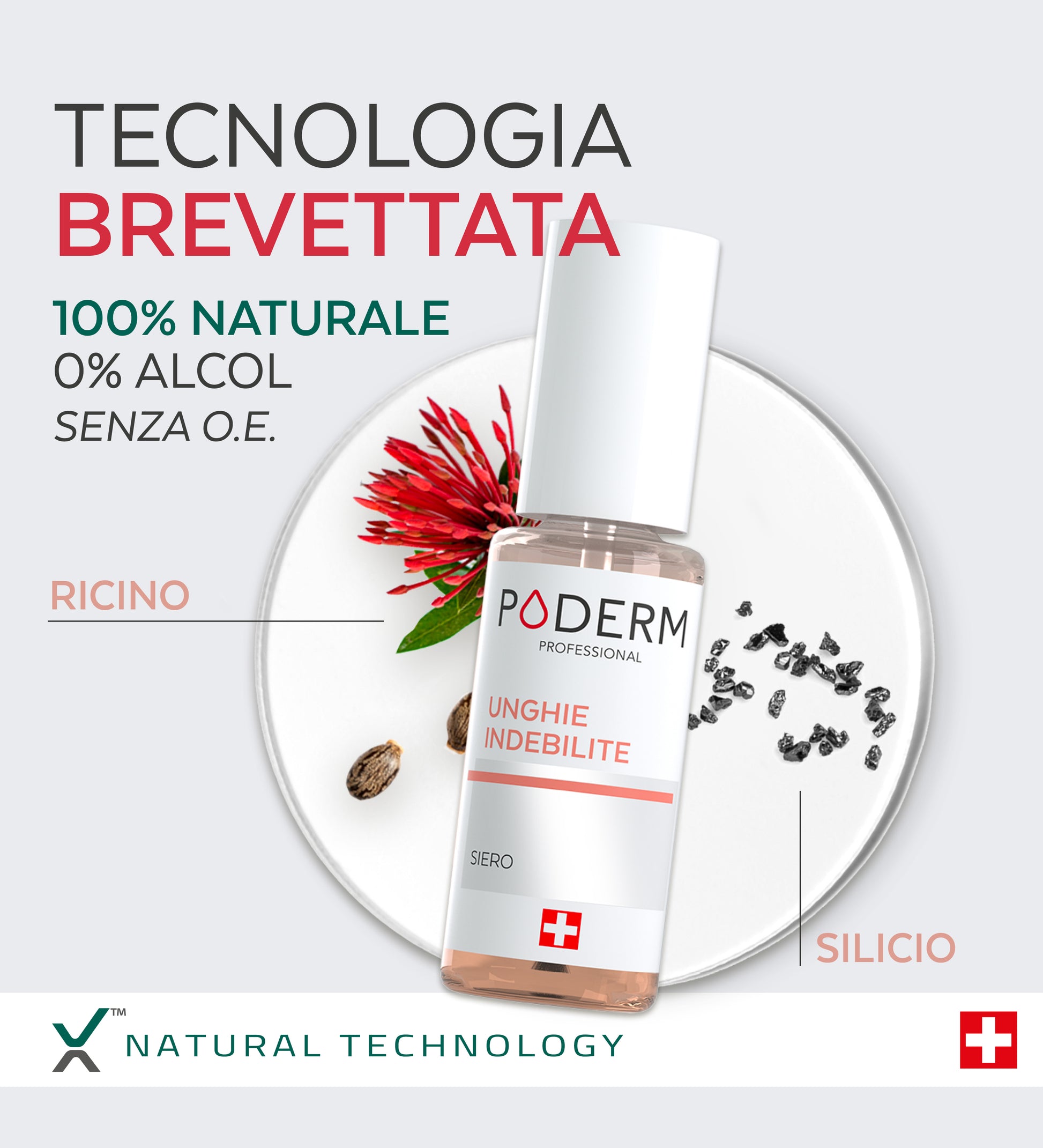 PODERM® Siero Unghie indebolite Silicium è un trattamento completo studiato per proteggere e rinforzare le unghie fragili. Ideale per prevenire la perdita di unghie, riduce la comparsa di macchie (marroni, nere, bluastre o gialle) e corregge le irregolarità come striature, spaccature e rotture.