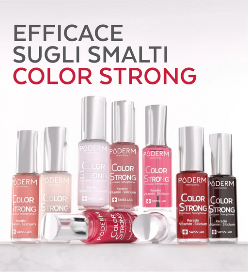 I sieri Poderm non sono smalti, quindi non si asciugano. Agiscono sull'unghia e formano un film lipidico sulla superficie dell'unghia.