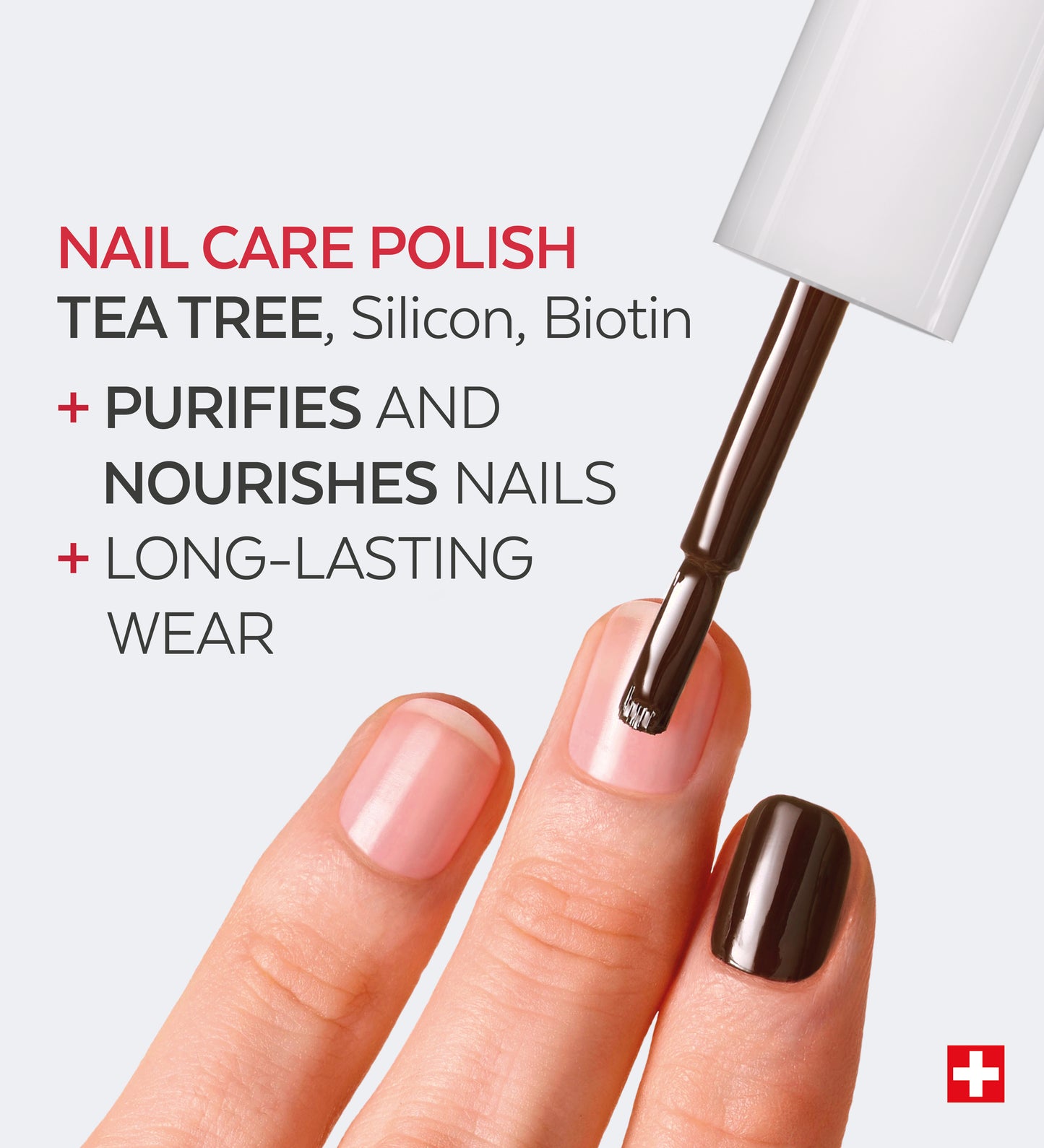 Lo smalto Color Care Marrone nasconde e cura le unghie danneggiate con un tocco di colore elegante. Un marrone ricco e sofisticato, ideale per un look naturale e chic.