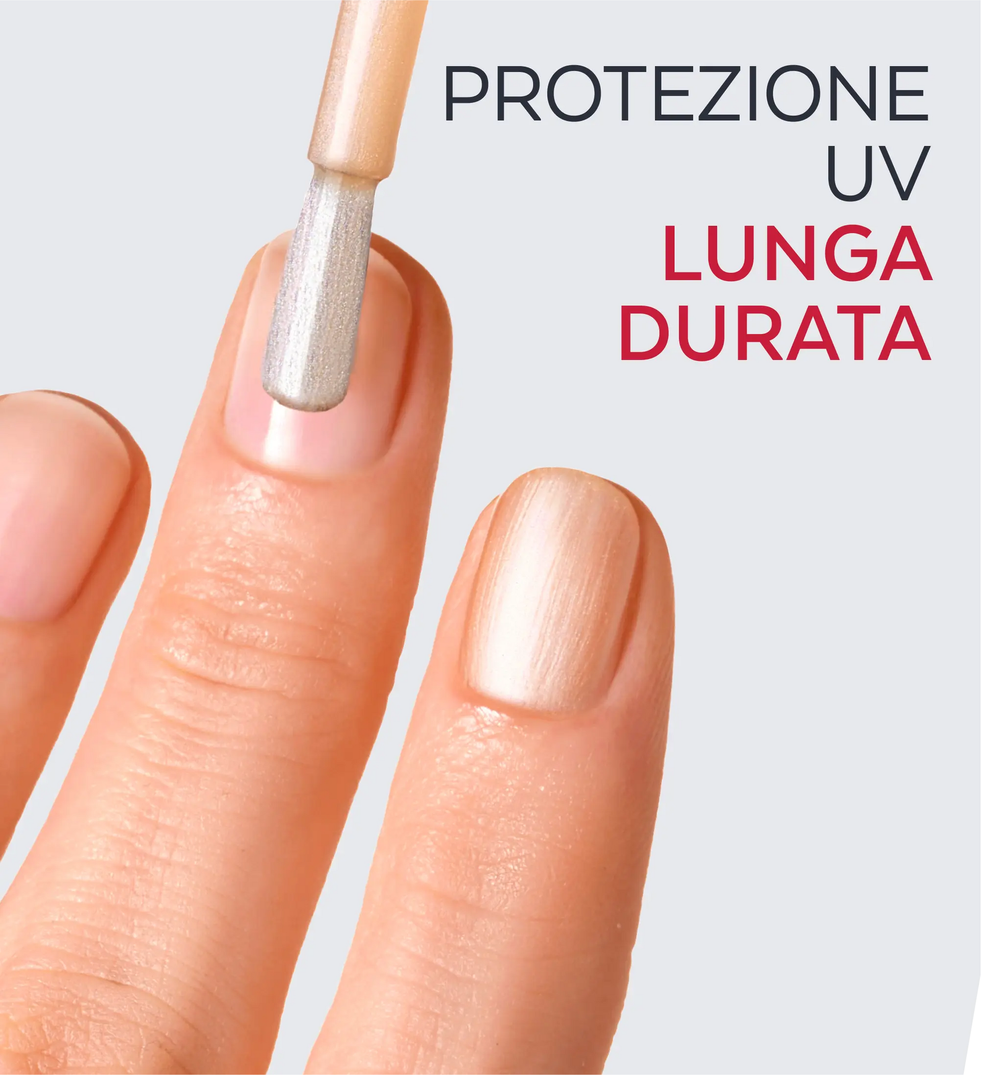 Gli smalti Color Care e Color Strong offrono una protezione UV per proteggere le unghie e la pelle sotto l'unghia dai danni causati dai raggi solari (esclusi top coat, base coat, gloss vitality e gloss éclat).