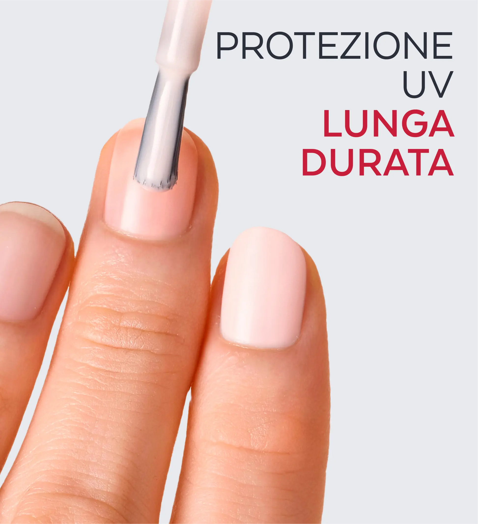 Gli smalti Color Care e Color Strong offrono una protezione UV per proteggere le unghie e la pelle sotto l'unghia dai danni causati dai raggi solari (esclusi top coat, base coat, gloss vitality e gloss éclat).